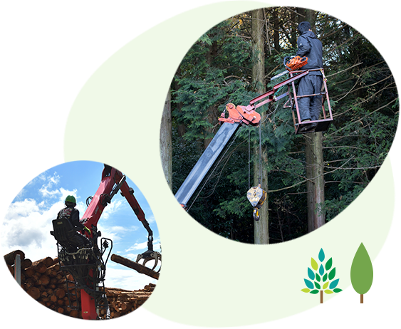 ※重機を使用しての伐採をおこなうため、狭い場所での作業は出来かねる場合があります。